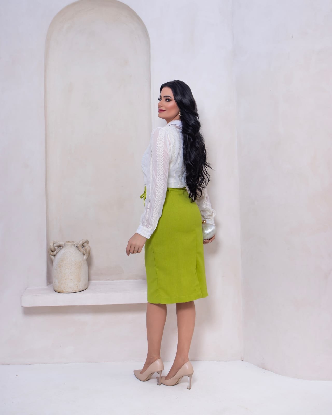 saia confeccionada em 70% viscose 30% linho.